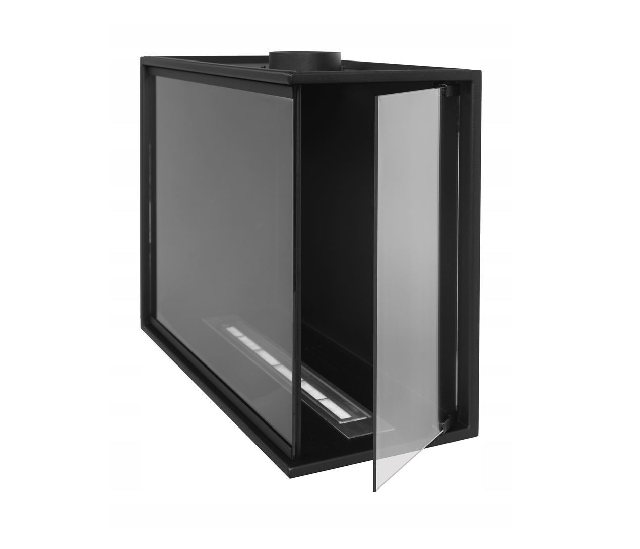 Narożny biokominek do zabudowy marki TrendPrime w wersji prawej