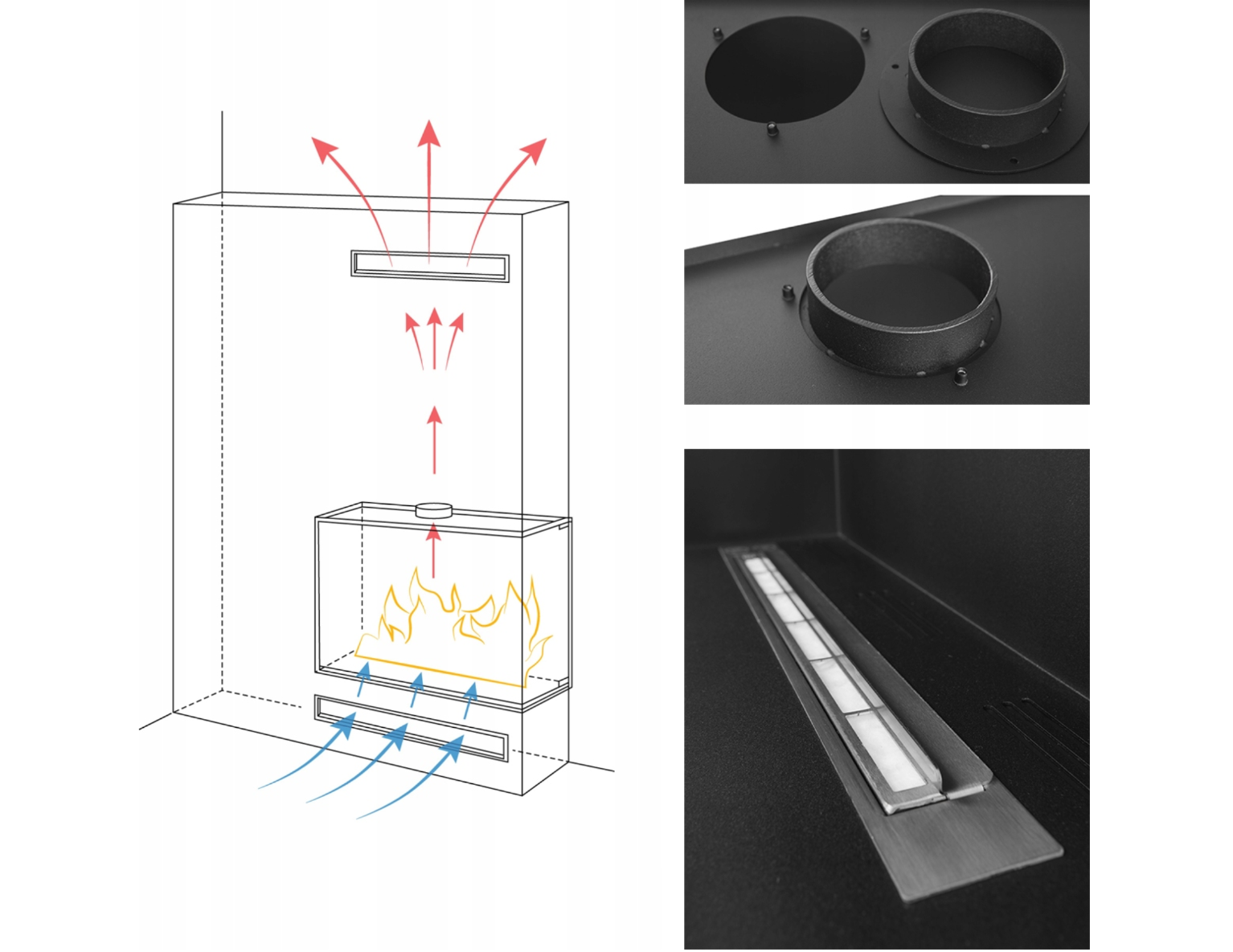 • Prawdziwy, żywy ogień bez dymu i komina