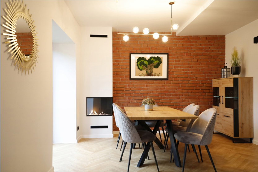 tworzy efektowną i bezpieczną dekorację wnętrza bez potrzeby komina.