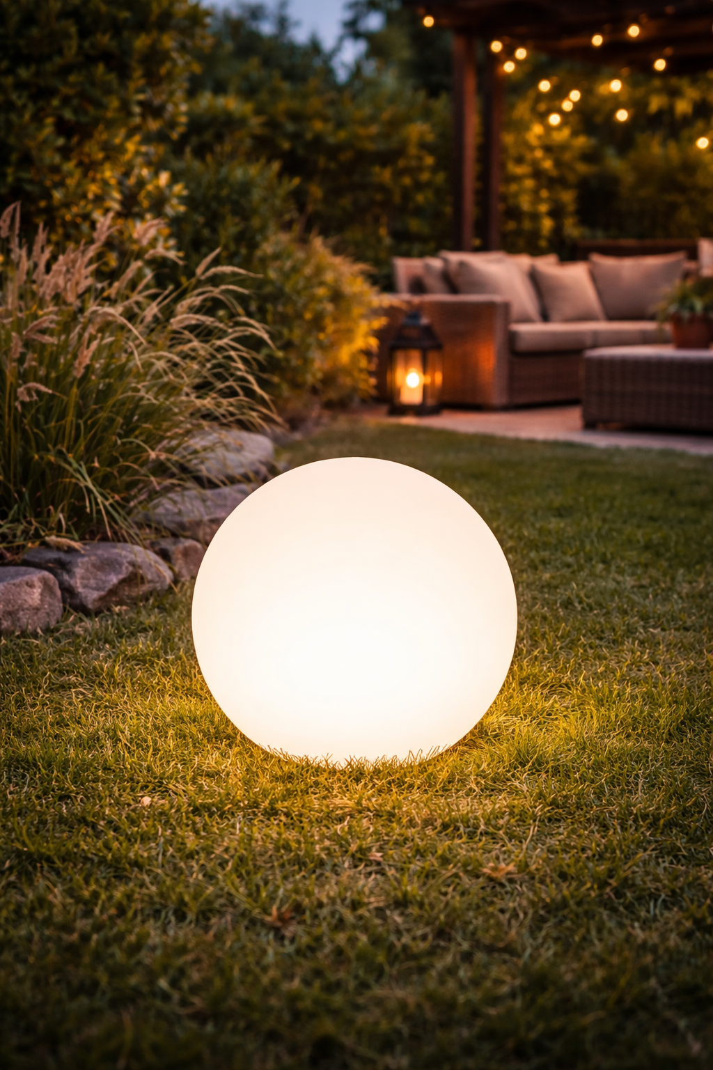 - Nowoczesna kula LED idealna do ogrodu, na taras lub balkon