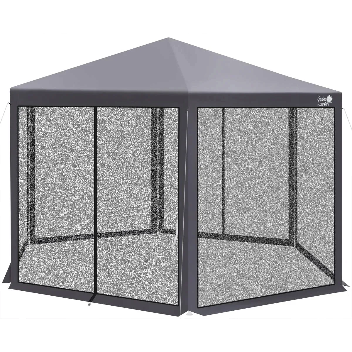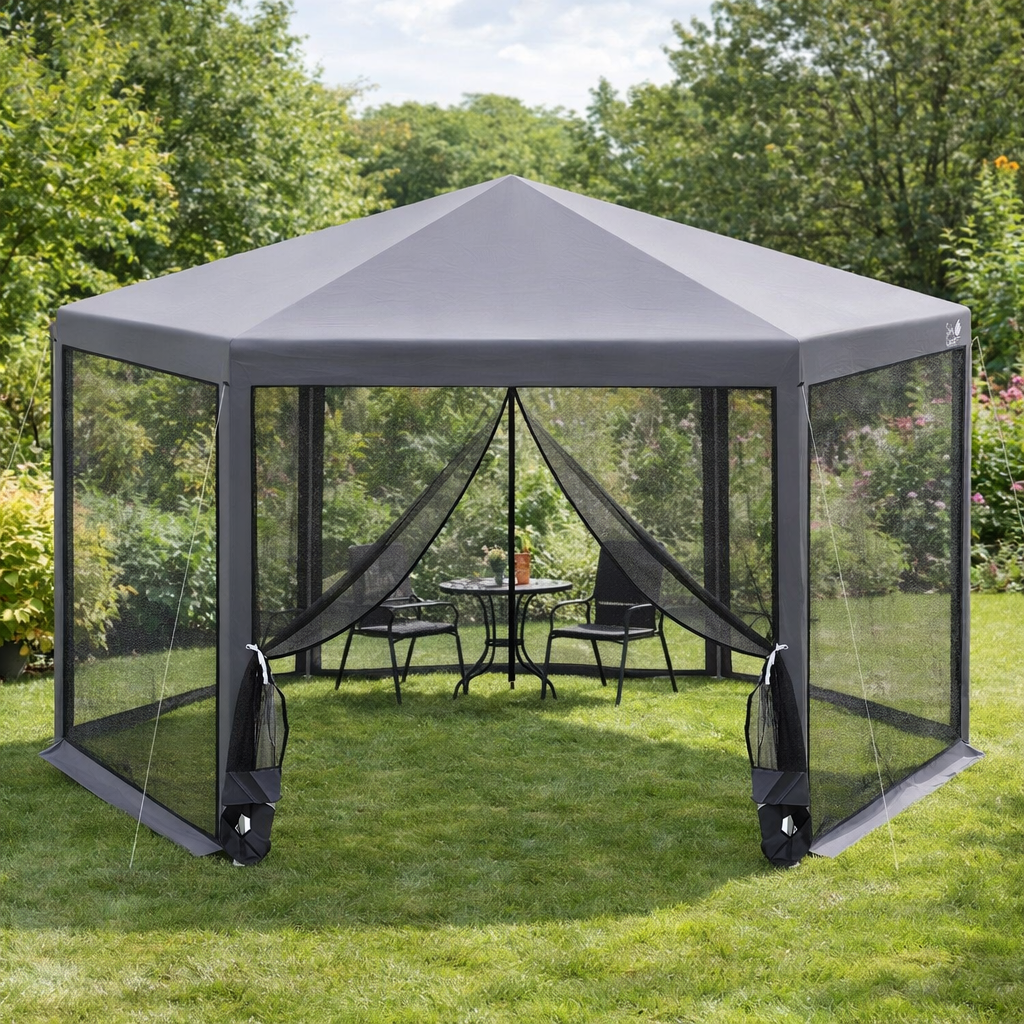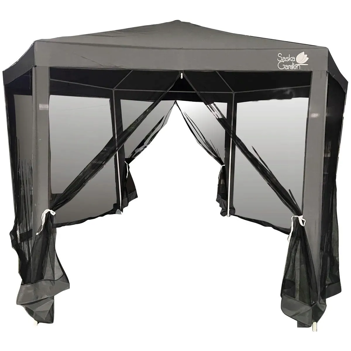 Pawilon ogrodowy sześciokątny 2x2x2x2.5 m z moskitierą – szary