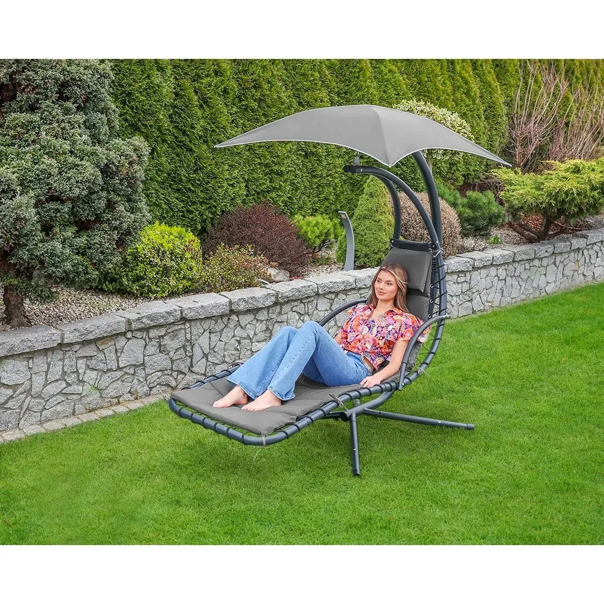 Fotel wiszący LIZBONA łączy wygodę leżaka z funkcją delikatnego bujania,